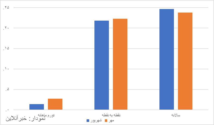 نرخ تورم نقطه به در حالی ۲۲.۳ درصد محاسبه شده که در مقایسه با تورم ۲۱.۸ درصدی شهریور، افزایش نیم واحد درصدی را تجربه کرده است. در این ماه بیشترین تورم نقطه به نقطه با ۳۵.۴ درصد مربوط به گروه «ساخت تجهیزات برقی» و کمترین تورم نقطه به نقطه با ۱۳.۵ درصد به گروه «ساخت منسوجات» است.