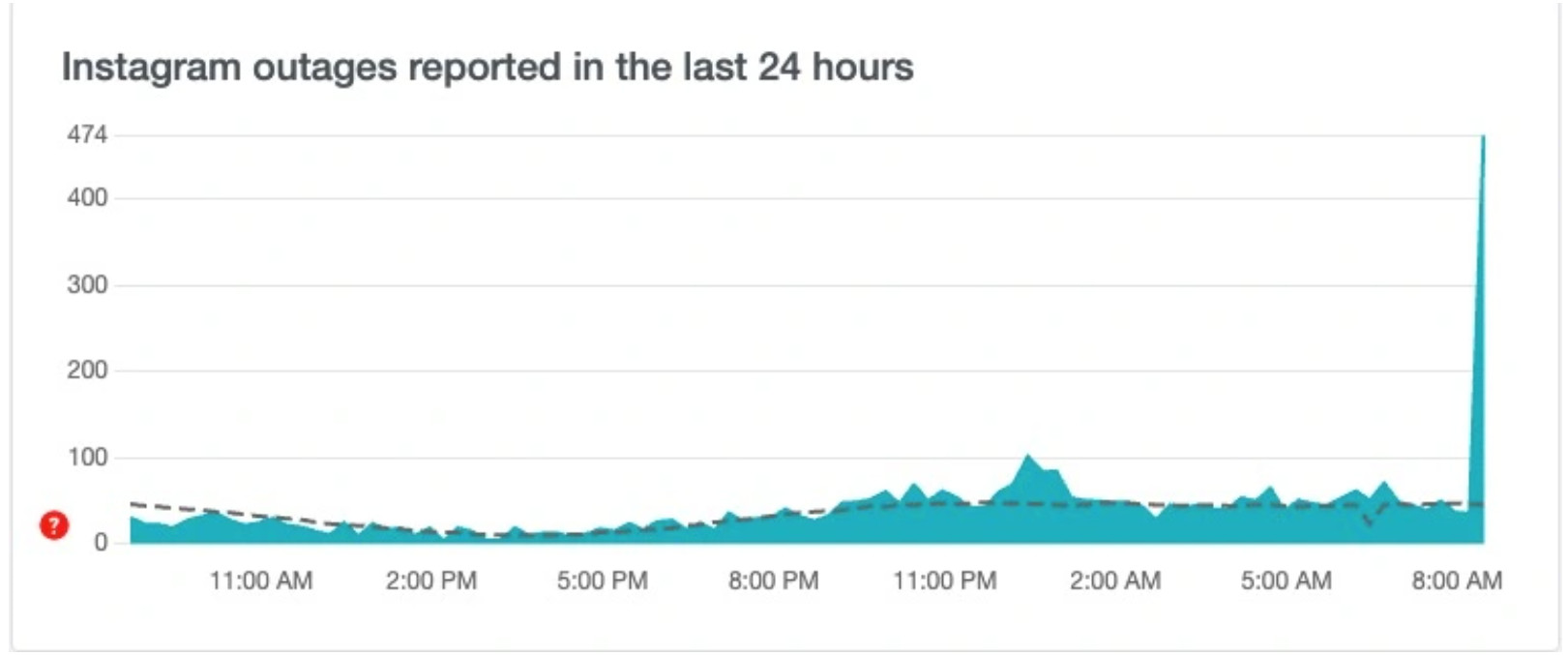 سایت Downdetector که قطعی ها را ردیابی می کند تصویر زیر را در زمینه اختلال در اینستاگرام منتشر کرده است. افراد بسیاری هم این مشکل را در توییتر اعلام کردند.