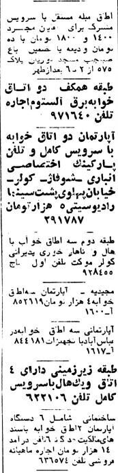 به گزارش خبرگزاری خبرآنلاین؛در حالی که روزنامههای بهمن ۱۳۵۷ سرشار از انواع خبرهای تحولات بی شمار و سریع انقلاب اسلامی است، در کنار برخی صفحات آگهیهایی هم منتشر میشد. در این آگهیها شکل دیگری از زندگی مردم در کنار انقلاب را میتواند دنبال کرد. در روزنامه اطلاعات ۲۱ بهمن ۱۳۵۷ چند آگهی اجاره منزل مسکونی منتشر شده که قیمت اجاره بهاء در آنها ذکر شده است.