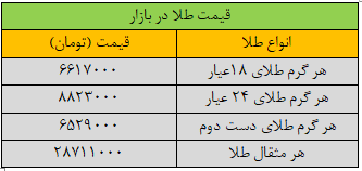 هر مثقال طلا ۱۸ عیار هم در طول دو هفته اول خردادماه با افزایش ۶۲۸ هزار تومانی به نرخ ۲۸ میلیون و ۷۱۱ هزار تومان رسید.