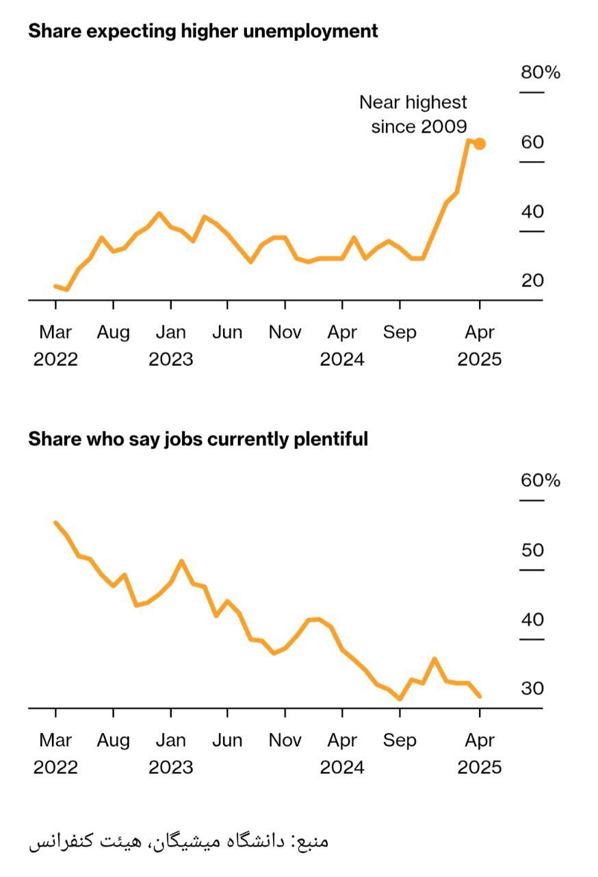 با این حال، نگرانیها درباره وضعیت بازار کار در آینده در حال افزایش است. درصد آمریکاییهایی که پیشبینی میکنند بیکاری در سال آینده بدتر خواهد شد، به نزدیکترین سطح خود از سال ۲۰۰۹ رسیده است. به نظر میرسد تعرفههای ترامپ، حداقل برای مدتی، باعث کندی اقتصاد خواهد شد و در چنین شرایطی، شرکتها ممکن است به کاهش حقوق و دستمزدها روی آورند.