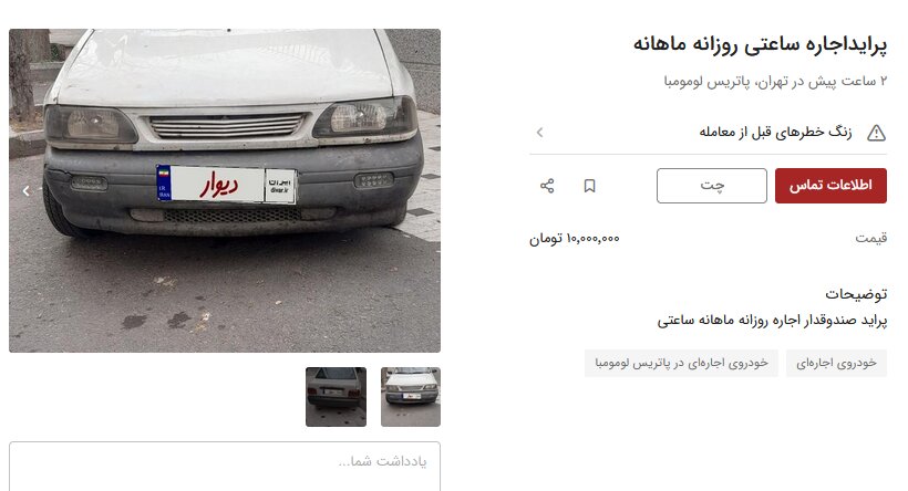اجاره خودرویی مثل پراید در تبلیغات از حدود ساعتی ۳۰۰ هزار تومان شروع میشود.